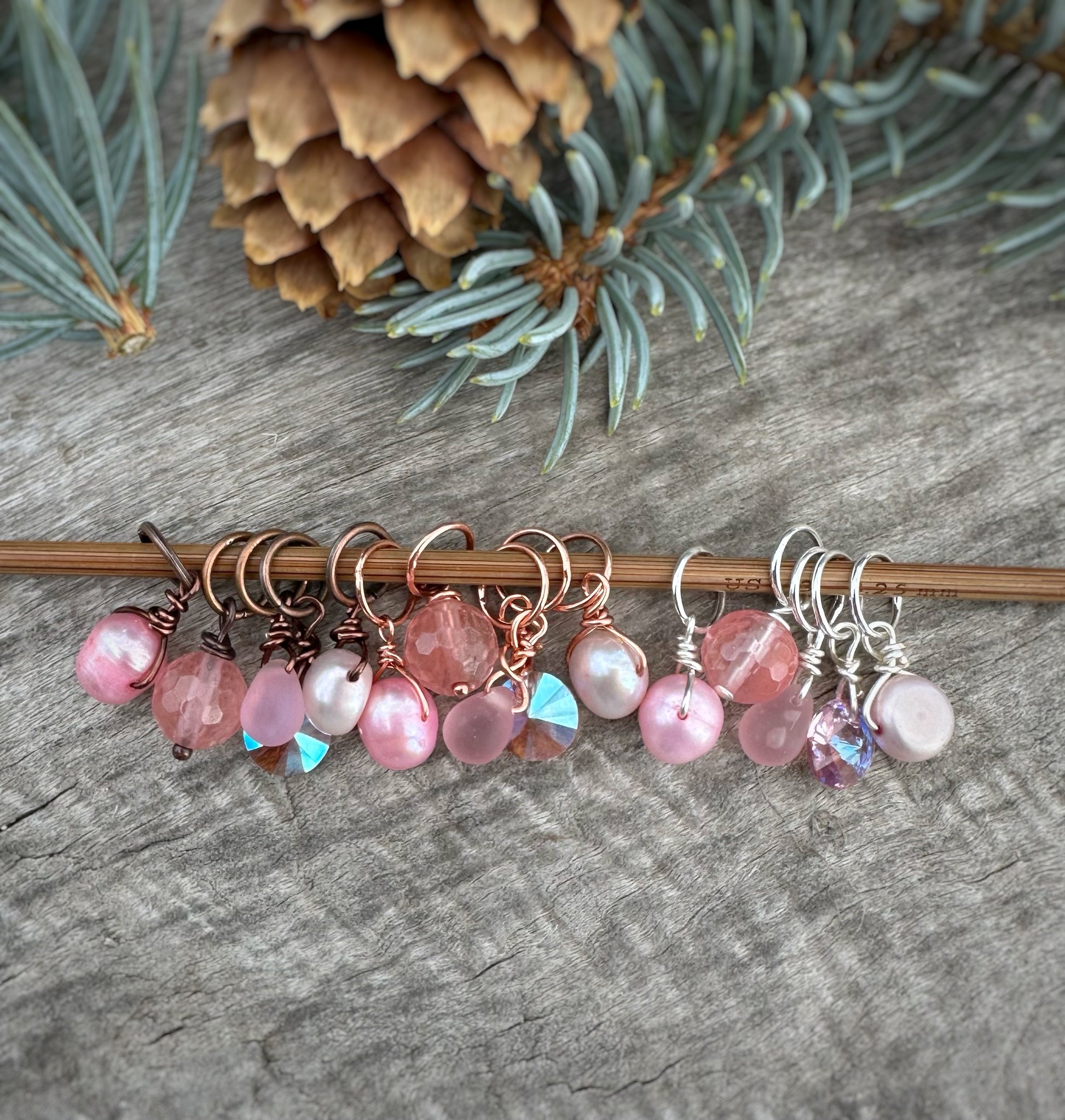 The Pink Mix contains 2 freshwater pearls, 1 glass drop, 1 crystal and a faceted Strawberry Quartz gemstone.