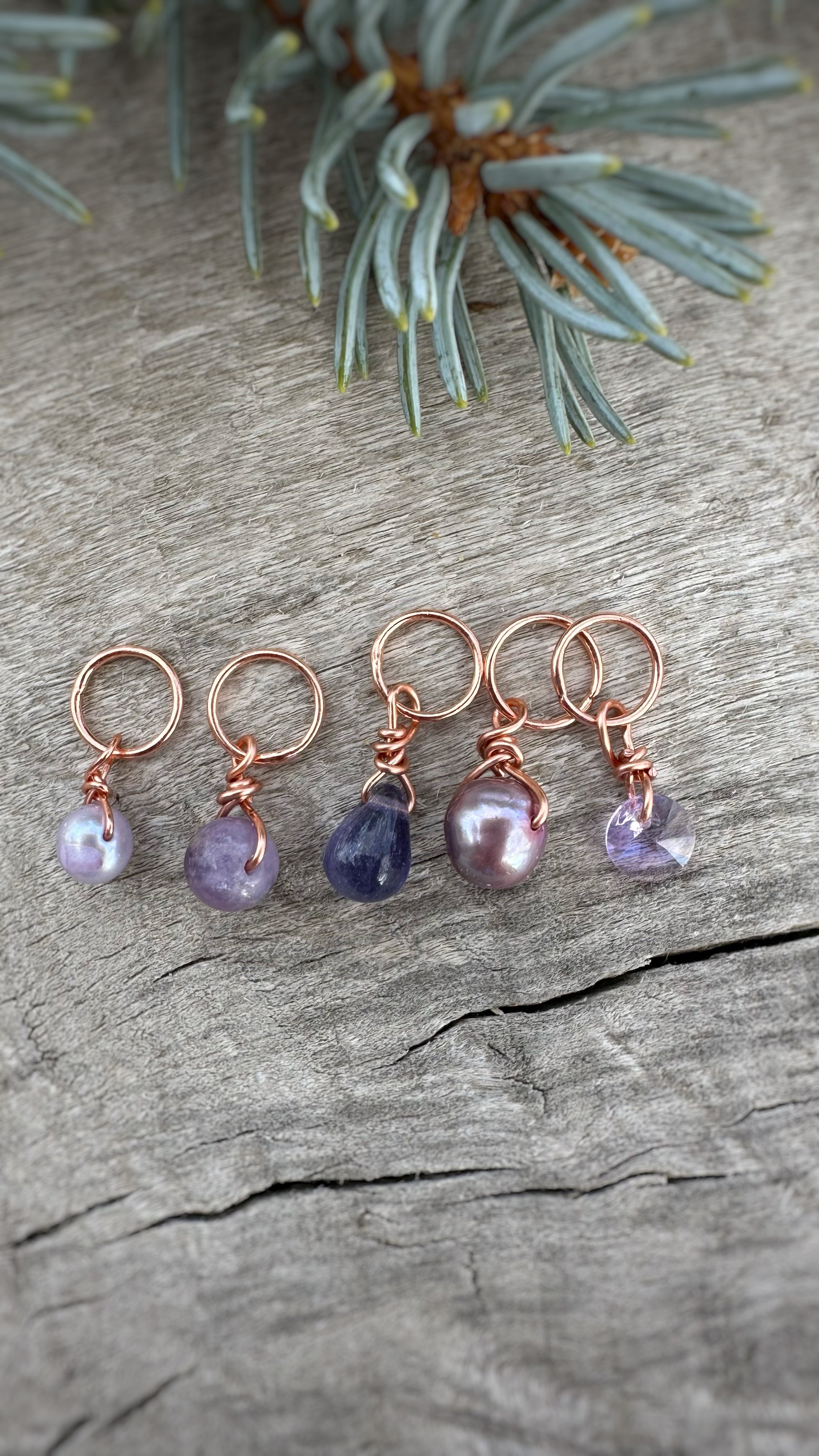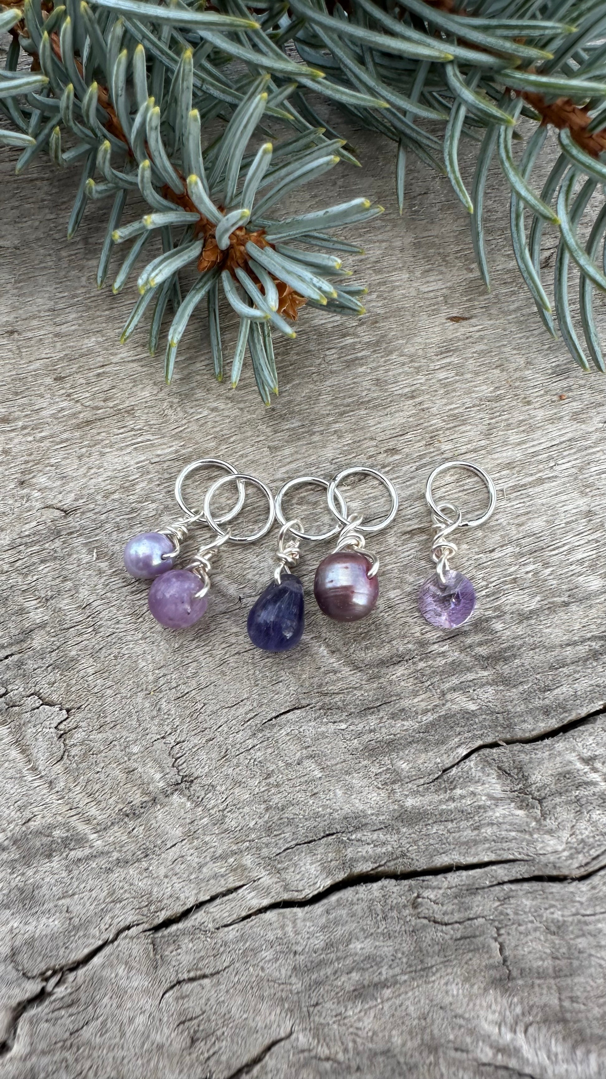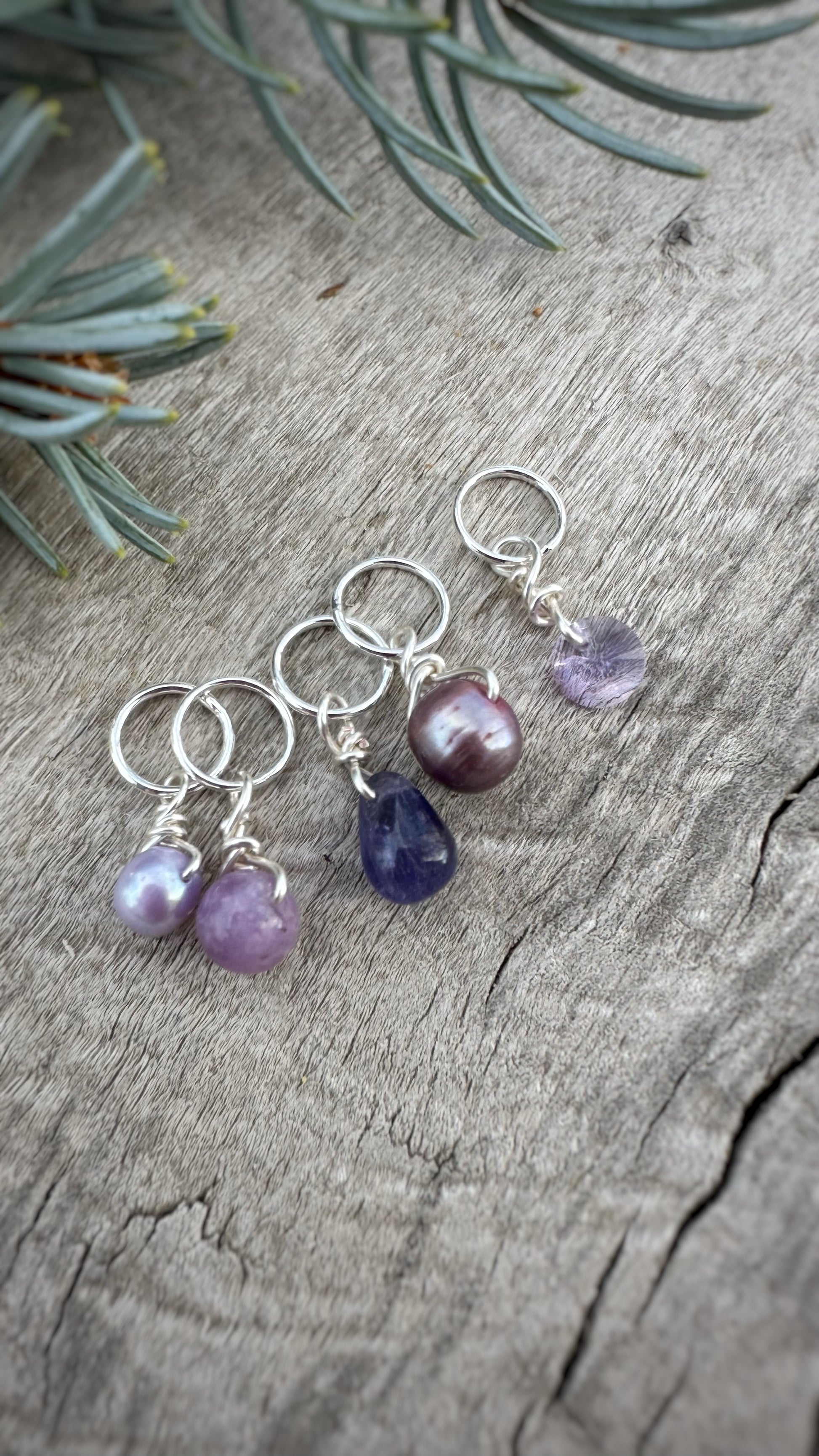 The Purple Mix contains 2 freshwater pearls, 1 glass drop, 1 crystal and a Lepidolite gemstone.