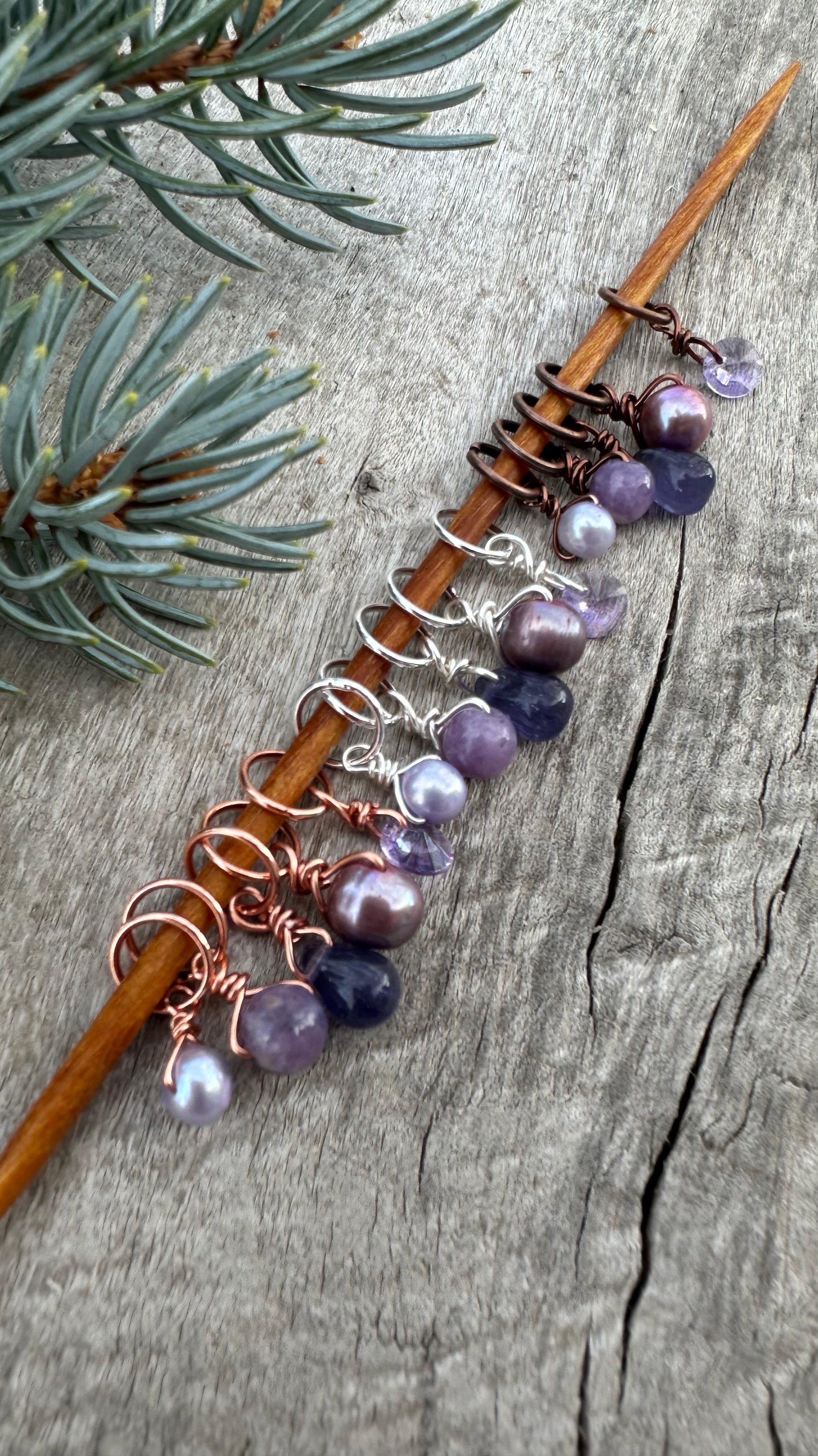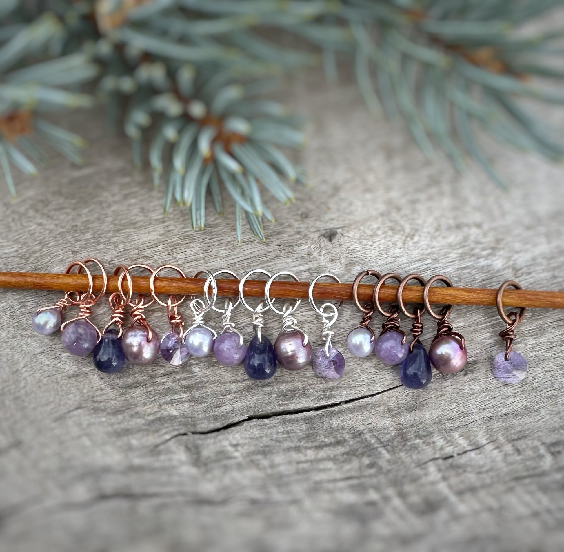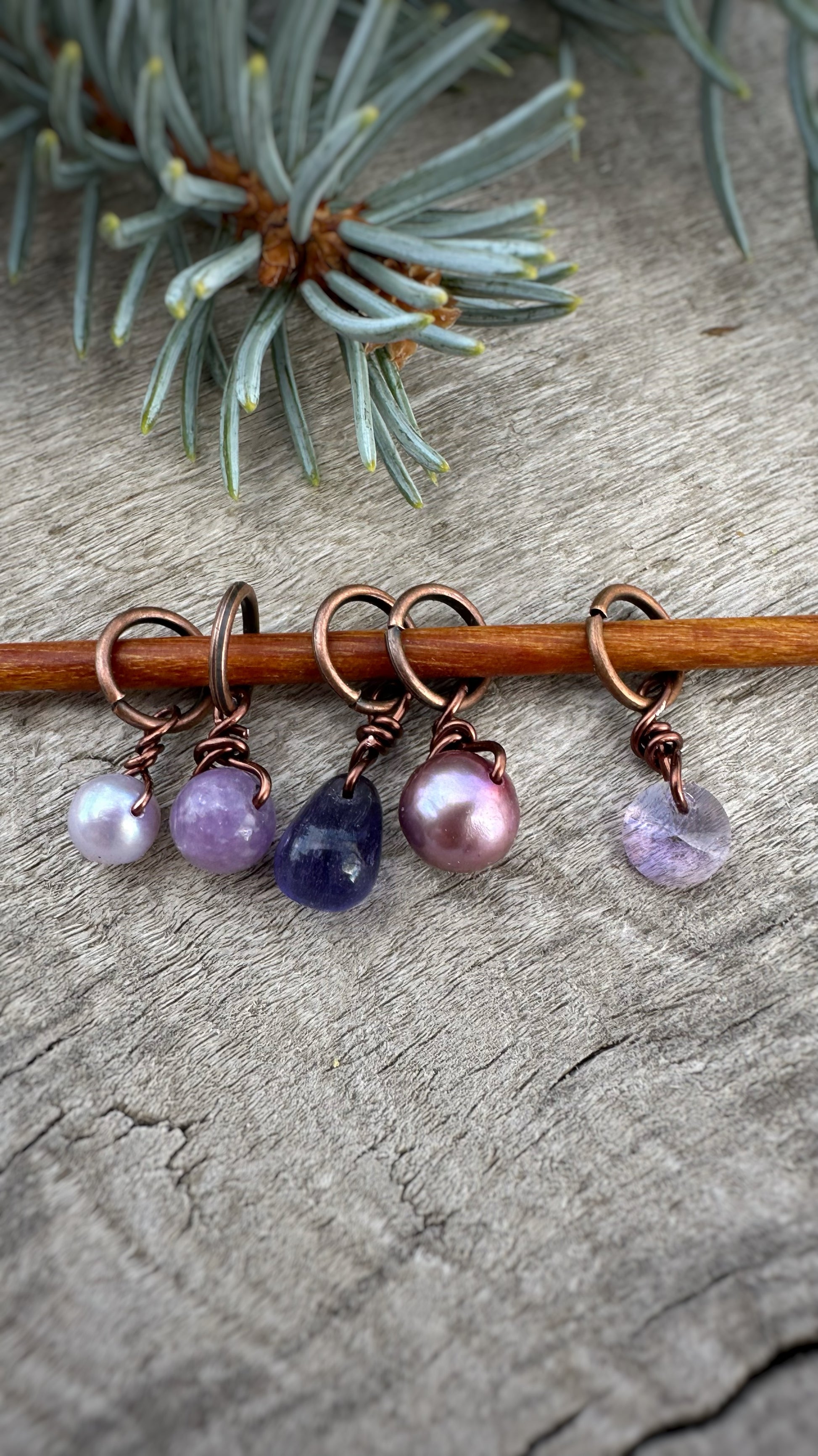 The Purple Mix contains 2 freshwater pearls, 1 glass drop, 1 crystal and a Lepidolite gemstone.