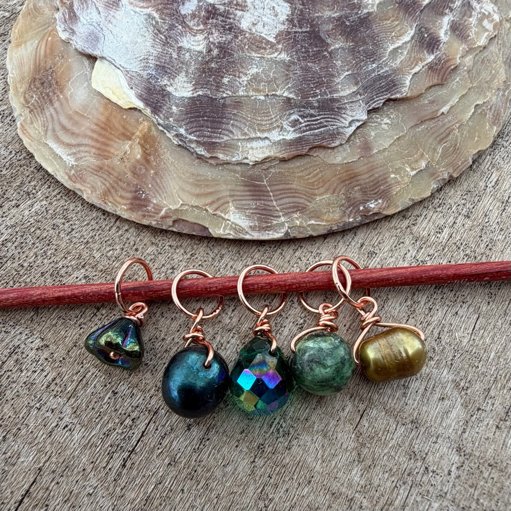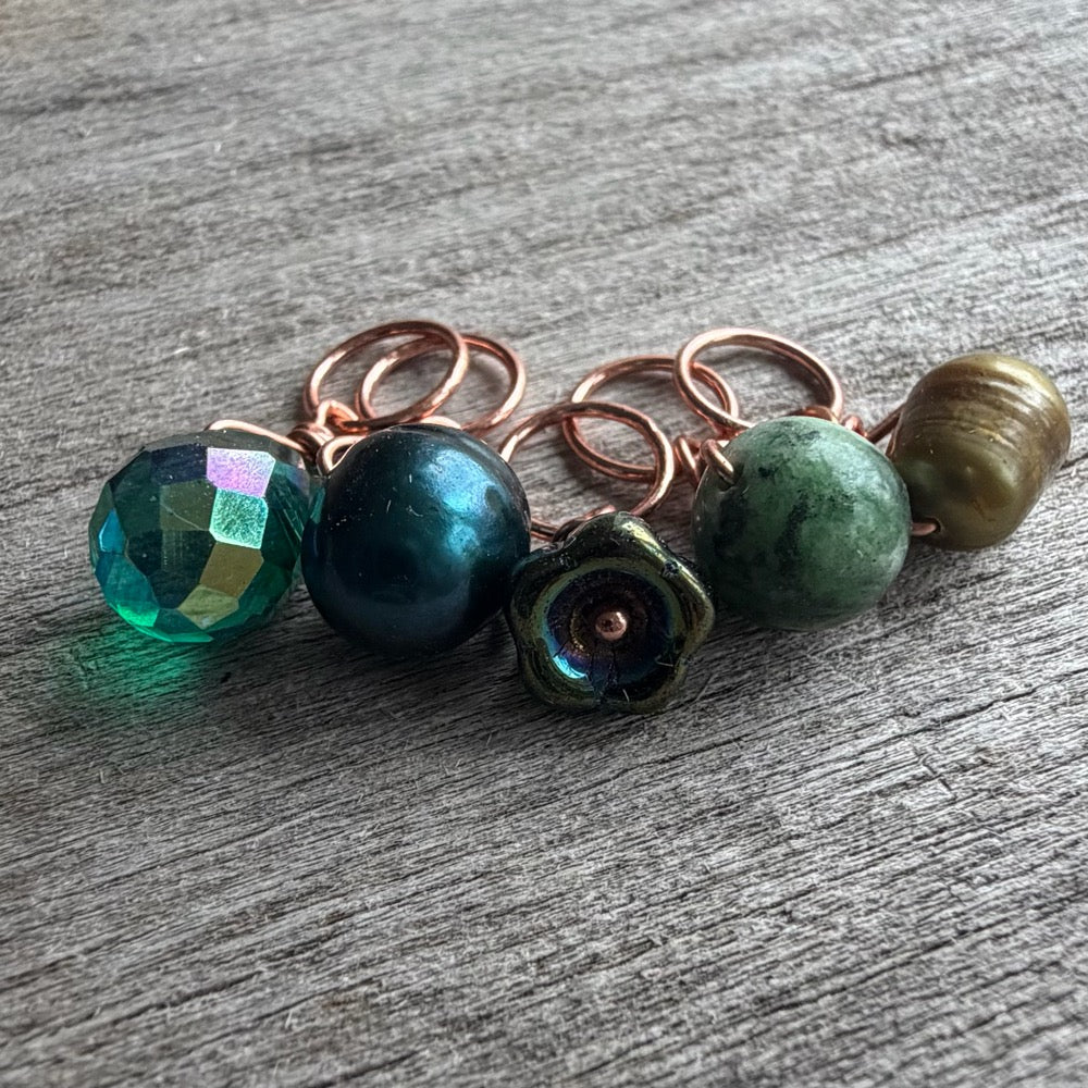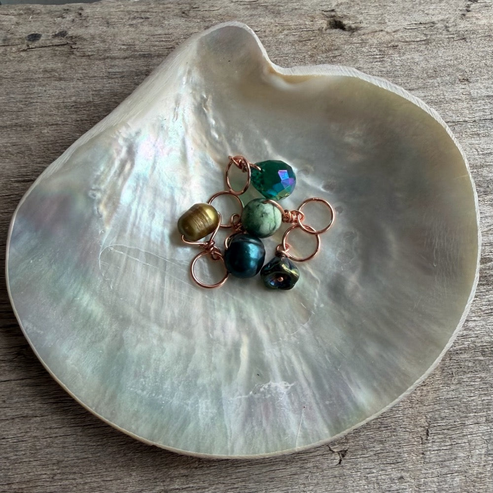 Celebrating March with a collection of green gemstones, glass and genuine freshwater pearls.